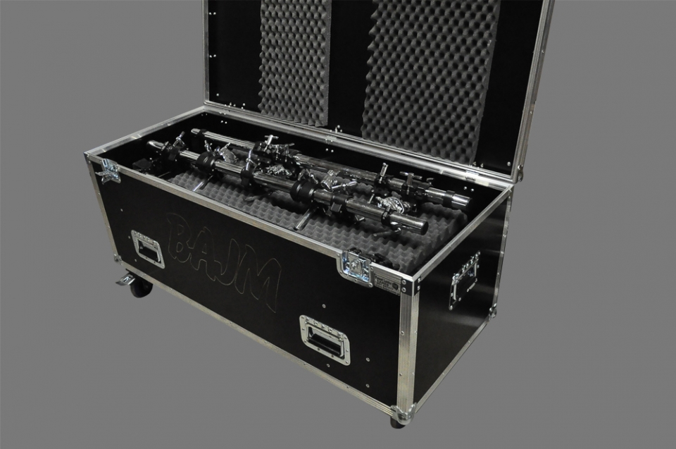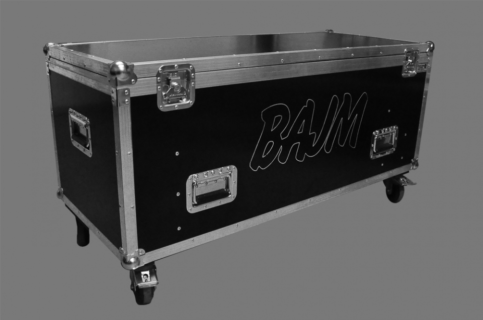 Kejs na hardware perkusyjny. Wykonany z bardzo wytrzymałej sklejki o grubości 9 mm. Dla ułatwienia transportu, kejs wyposażono w 6 rączek kasetowych i koła, w tym 2 z hamulcem. Aluminiowe okucia i stalowe narożniki zapewniają skrzyni bezpieczenstwo w transporcie.