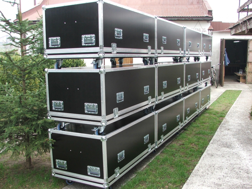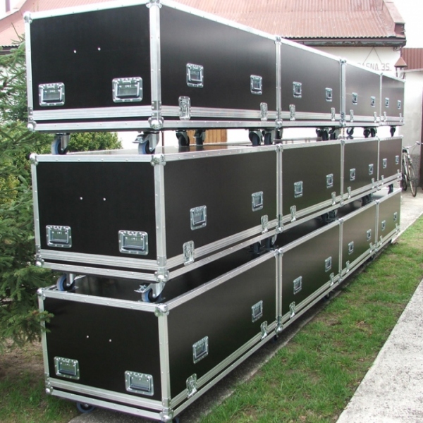 Kejs transportowy na sprzęt nagłośnieniowy.